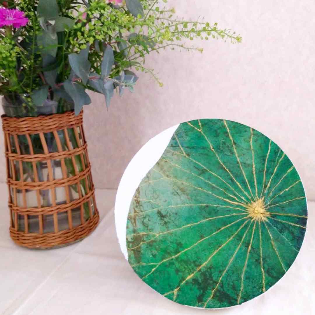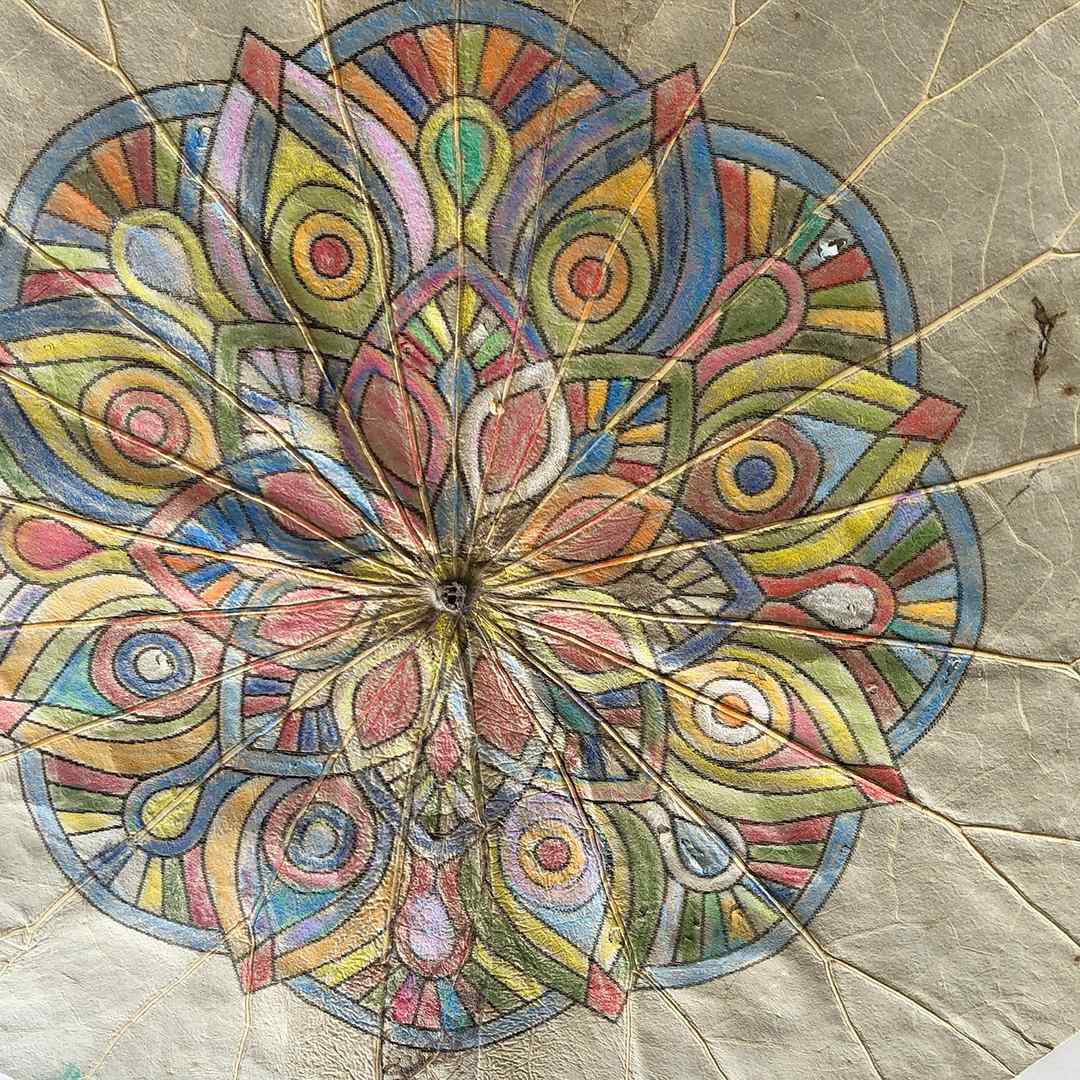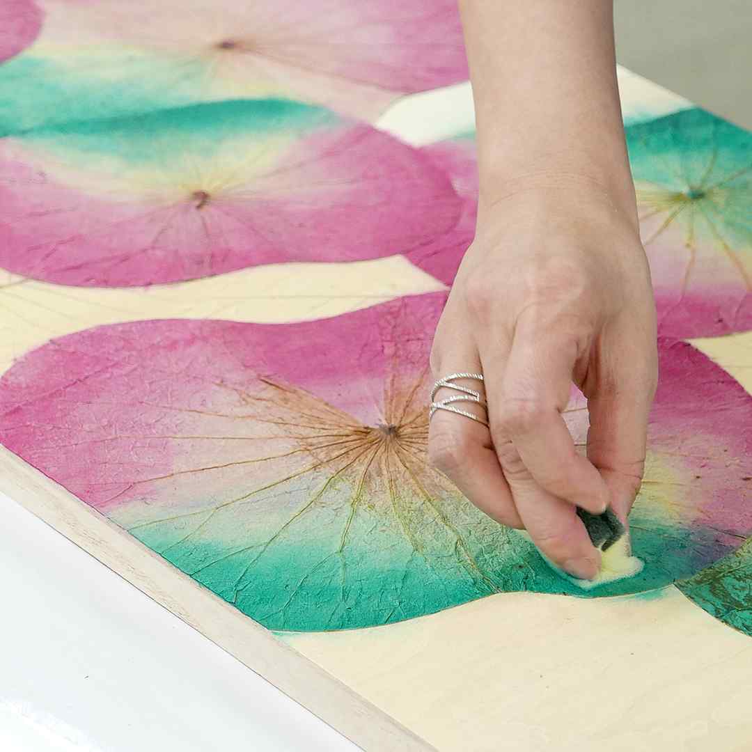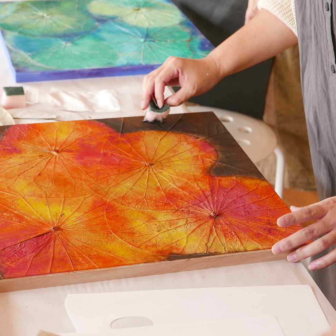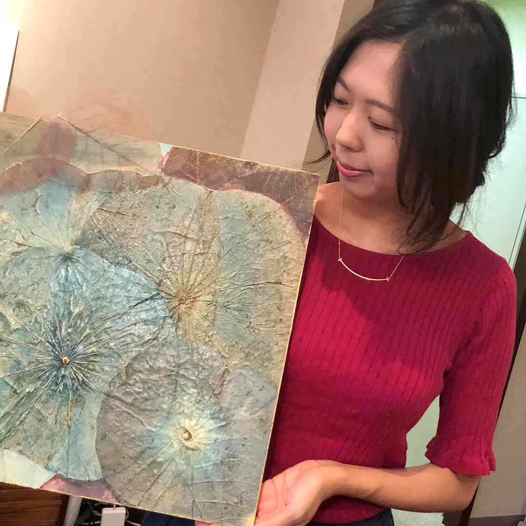 菩提樹は、学びや気づきの象徴として古くから親しまれてきた木です。その葉の繊細な葉脈に、植物への敬意と、アートをはじめる喜びを重ねました。